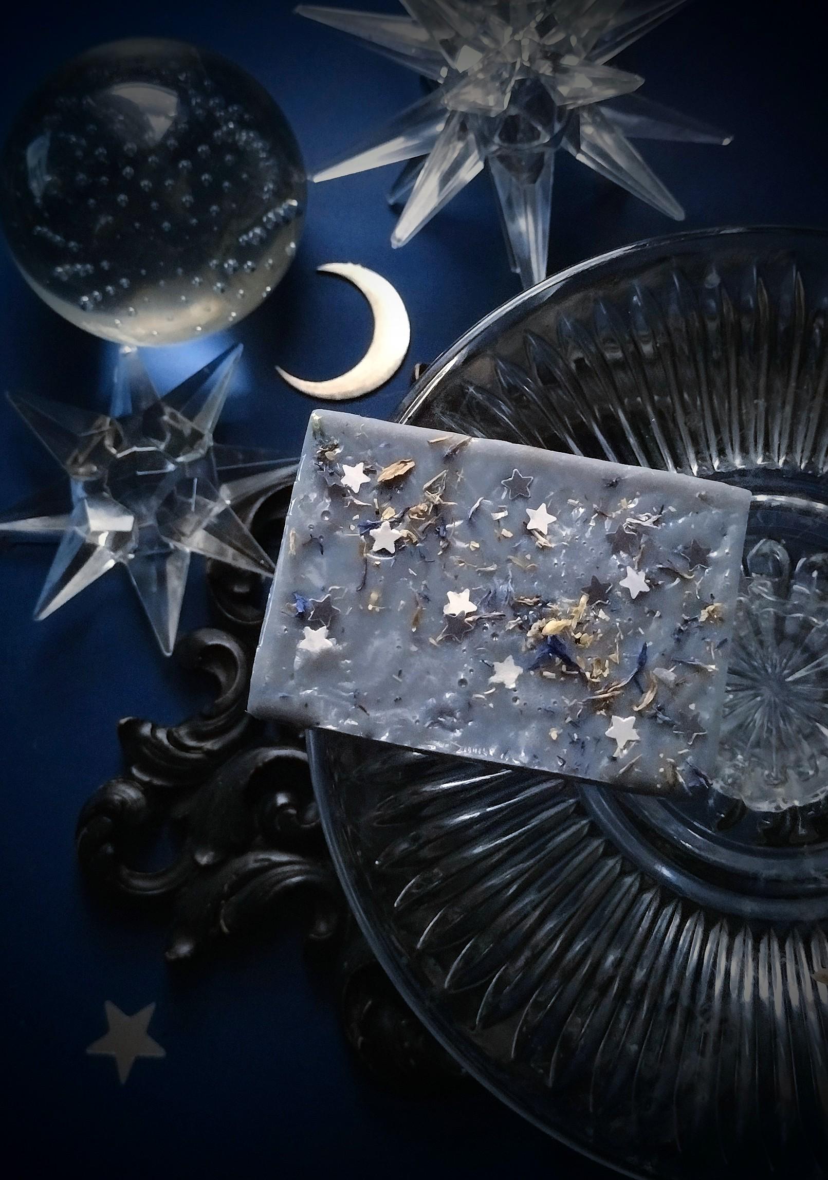 Like a lullaby written in stars, this ethereal blend is soft, floral, and utterly transportive. Sensual ylang ylang dances with calming lavender and violet leaf, while lotus and vanilla offer a silken finish. Use this soap to unwind, reflect, and step into your quiet inner world. “Bathe in moonlight. Drift into dream."