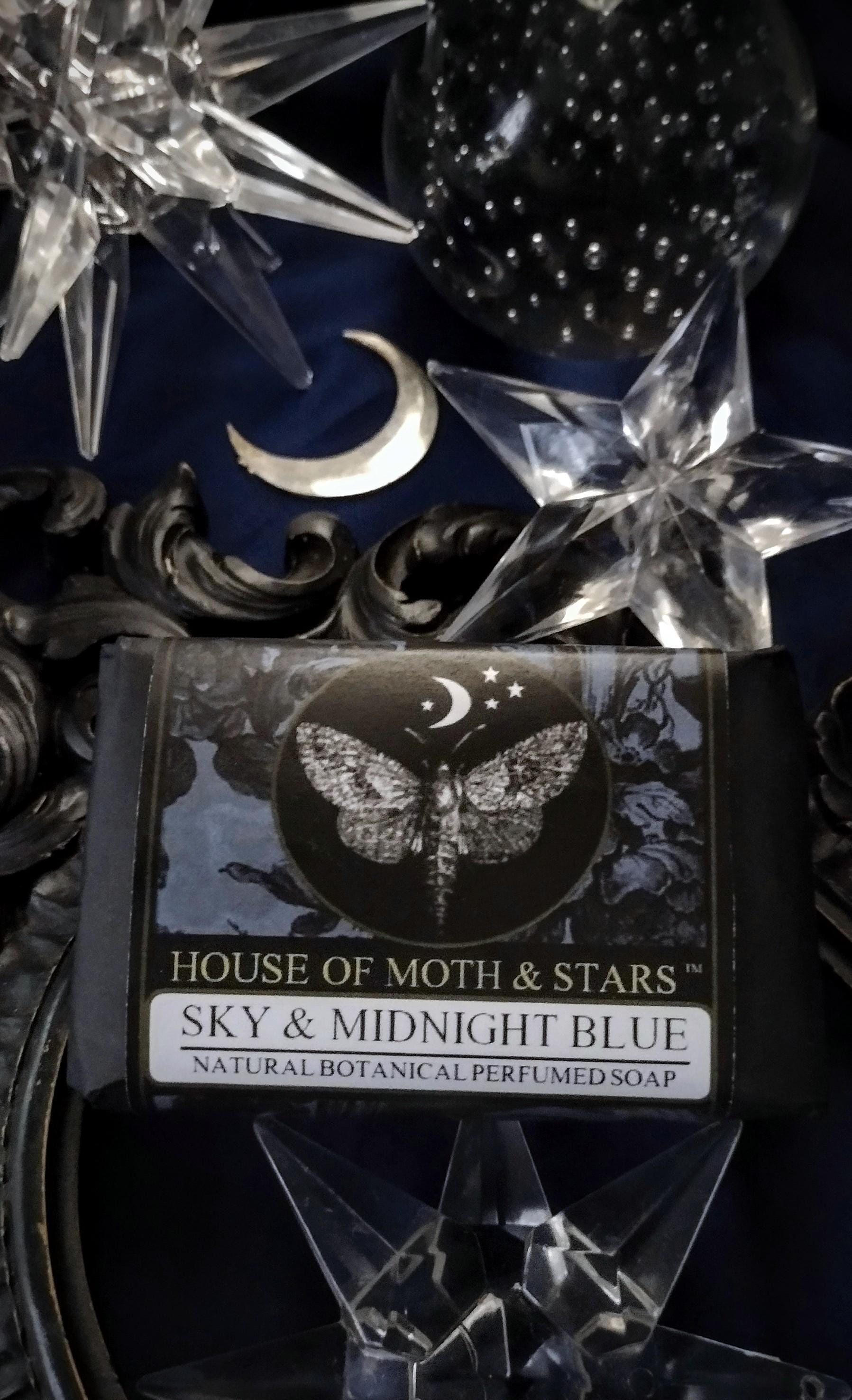 Offered is a Handmade Natural Ceremonial Perfume Soap Bar. Naturally colored a light powder blue with added herbs and botanicals, scented in essential oils with rice paper stars embellishments.