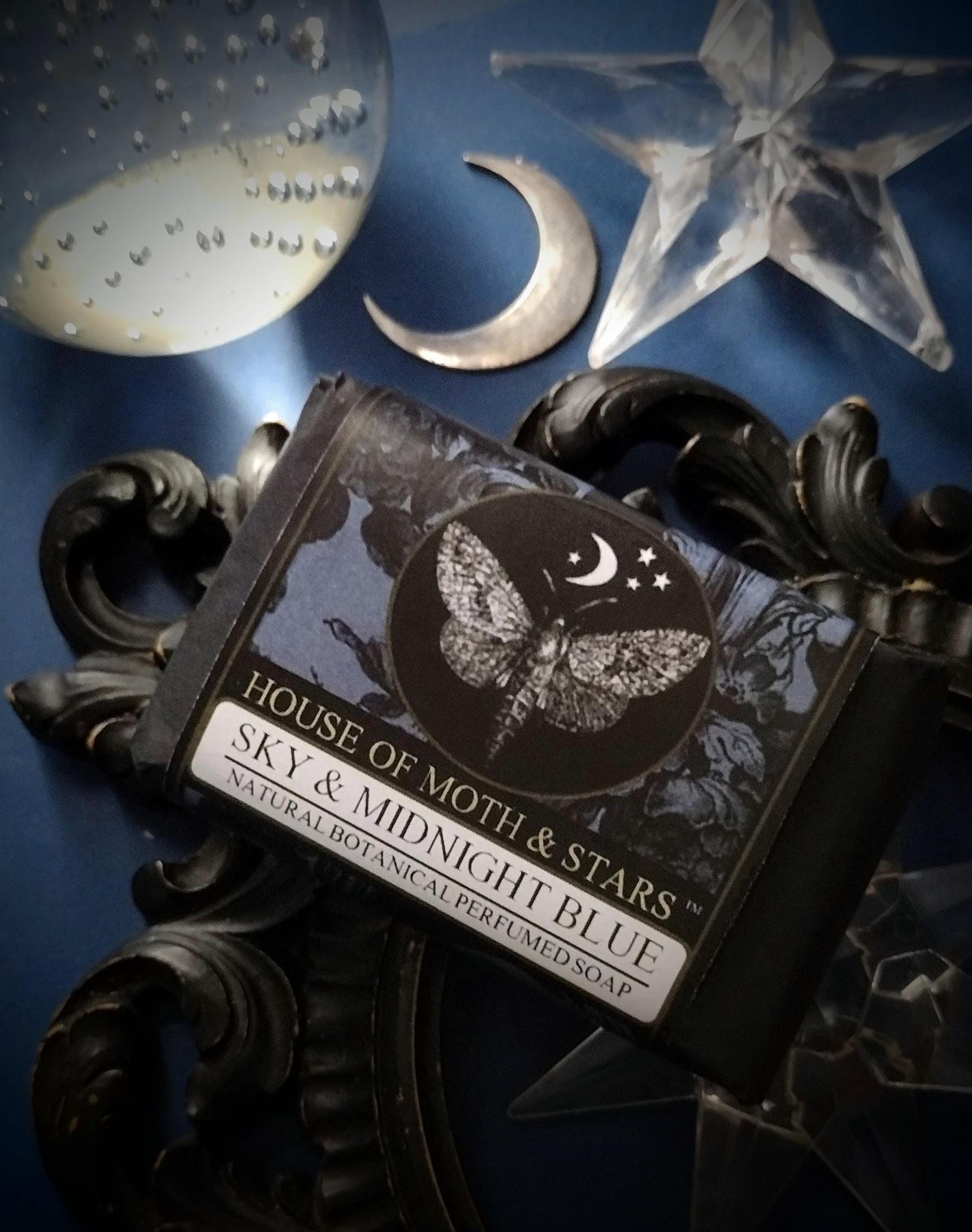 Ingredients: Olive Oil (Grade A extra virgin), Palm Oil, Coconut Oil, Grapeseed oil, Safflower Oil, Glycerin (kosher, of vegetable origin), Shea Butter, Purified Water, Sodium Hydroxide (saponifying agent), Sorbitol (moisturizer), Sorbitan oleate (emulsifier), Soybean Protein (conditioner).Naturally colored in Serbian Blue Clay, Blue Corn Flowers, Lavender Buds, Jasmine Flowers, Essential Oils, Absolutes. Rice Paper Stars.